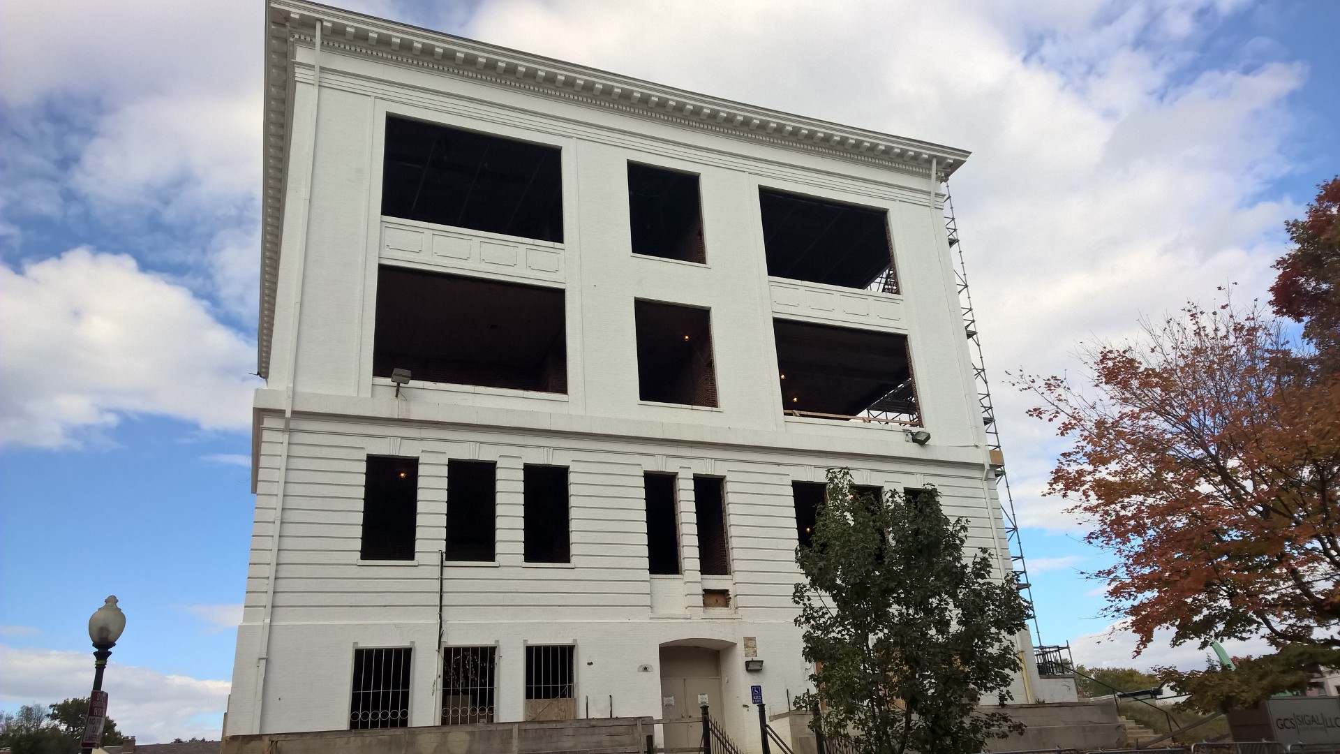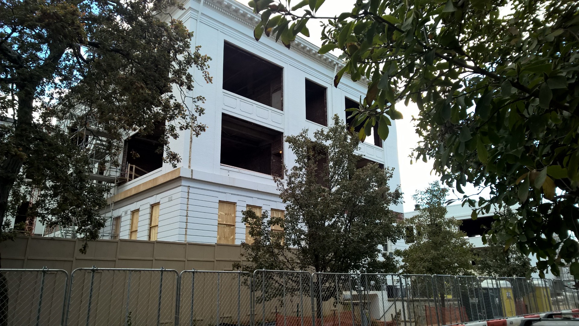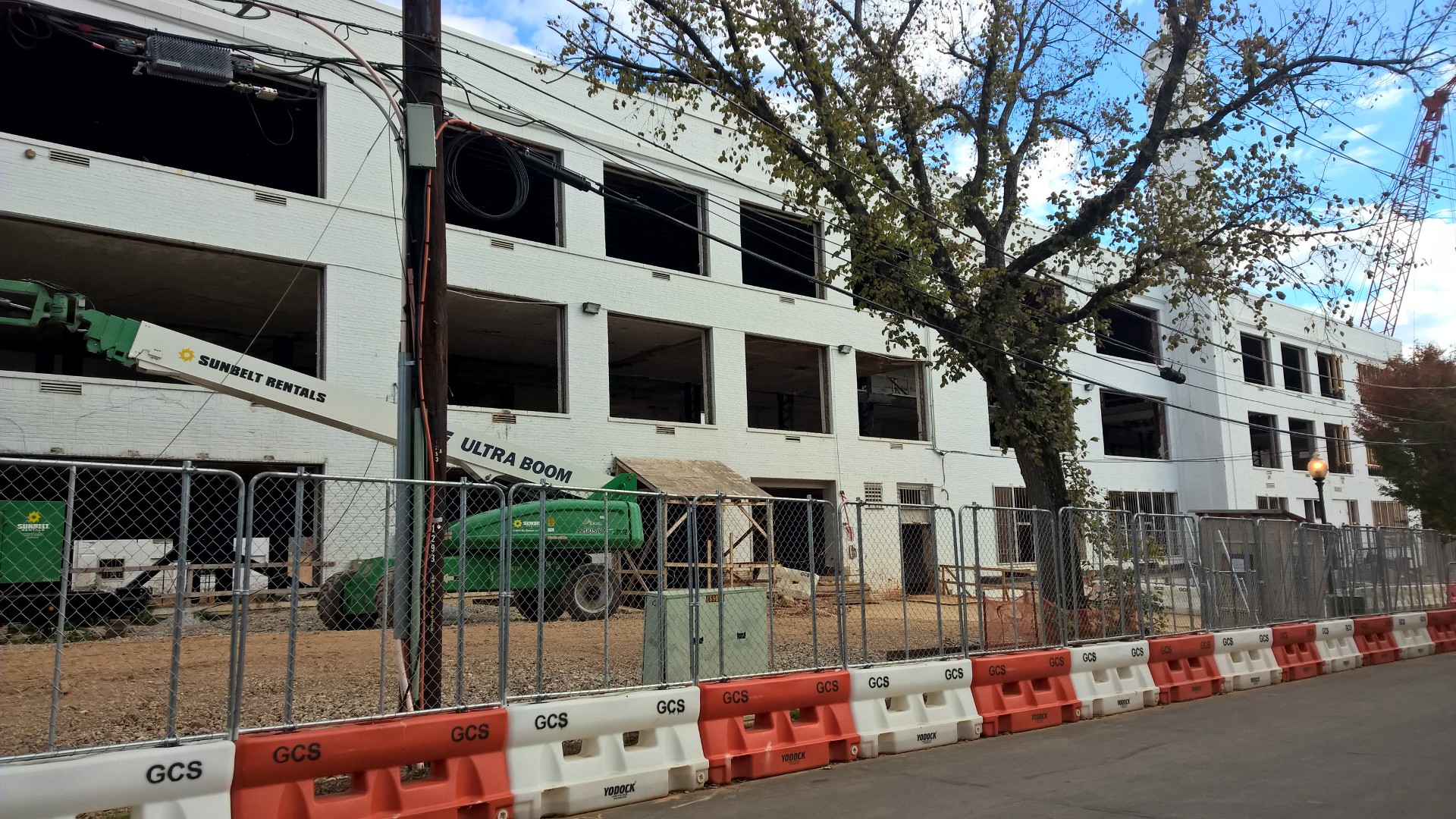 Seeing Ellington in its current state helps explain why its renovation is so expensive. A central portion of the building has been torn down. Save brick walls and floors, most of its interior has been torn out. Because load-bearing walls have been removed, large quantities of structural steel are being installed.