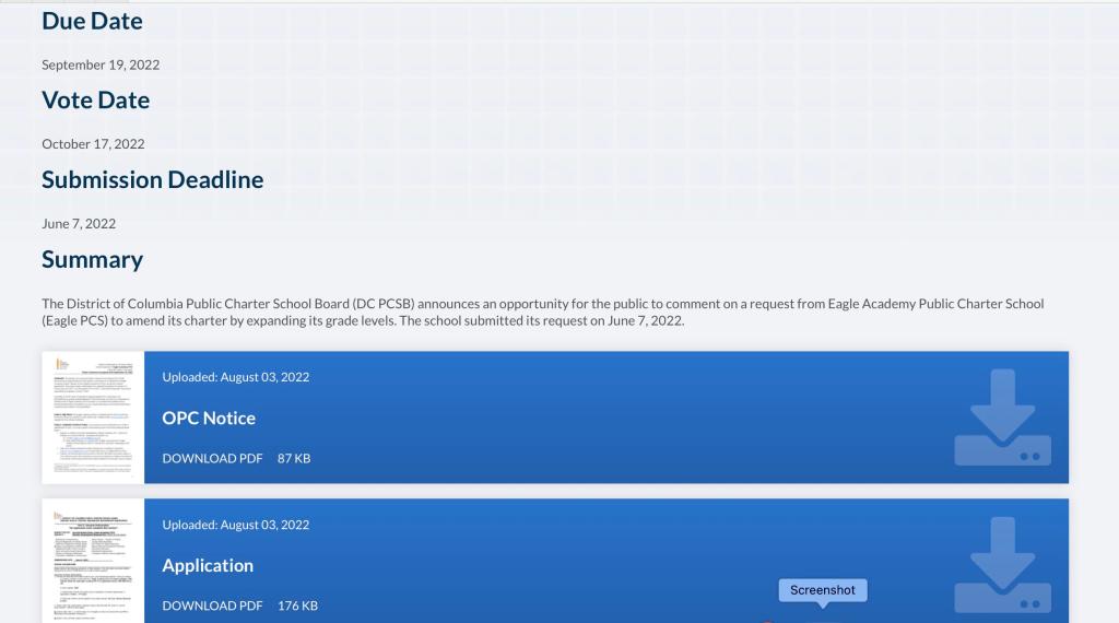 Bottom line: The date range both on that public comment website as well as in the creation dates of the posted documents suggests an almost 2-month gap between the time Eagle Academy submitted its application for grade expansion and the time that public notification of it was made by PCSB.